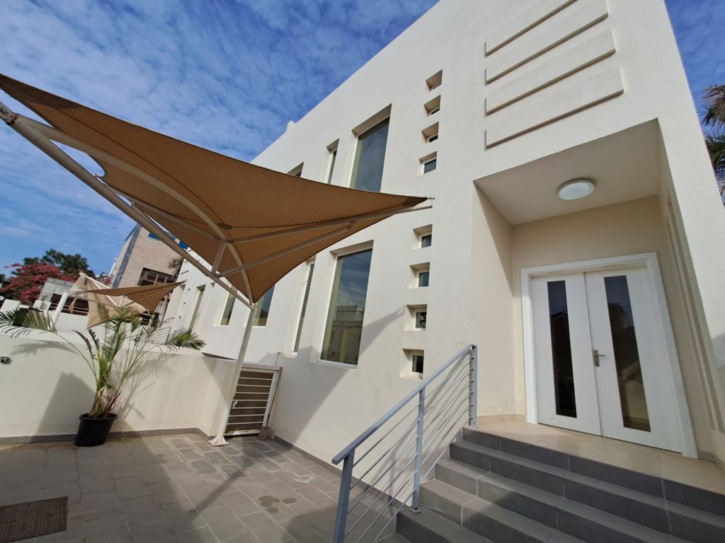 The Twin-villa is located in Al Khuwair. Consisting of a 3 bedrooms, 4 bathrooms, hall, and kitchen. This villa features a maid’s room, laundry room and shaded parking.